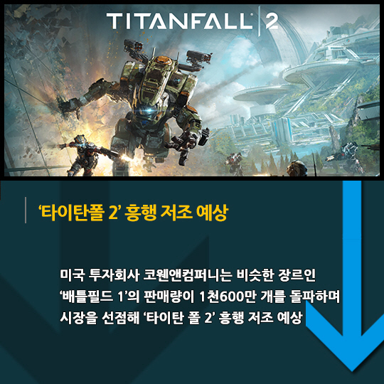 미국 투자회사 코웬앤컴퍼니는 비슷한 장르인 '배틀필드 1'의 판매량이 1천600만 개를 돌파하며 시장을 선점해 '타이탄 폴 2' 흥행 저조 예상