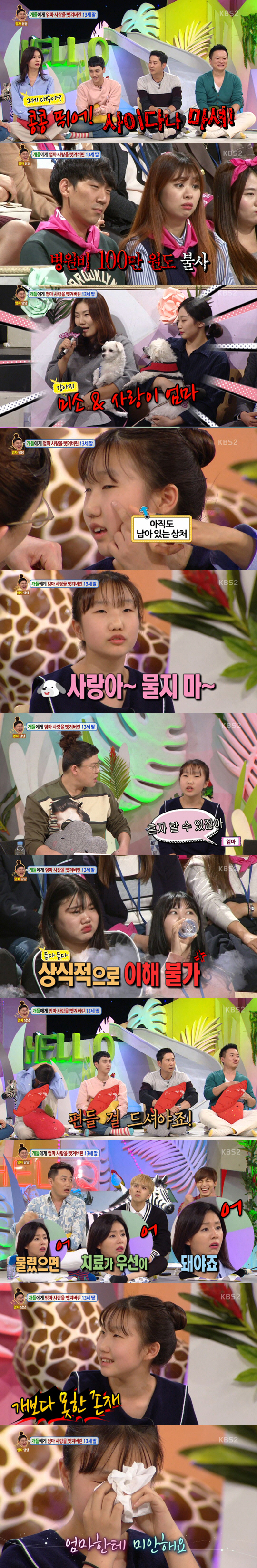 [스포츠조선닷컴 김영록 기자]'안녕하세요' 사연 주인공 정연이가 "난 엄마한테 개만도 못한 존재"라며 분통을 터뜨렸다.