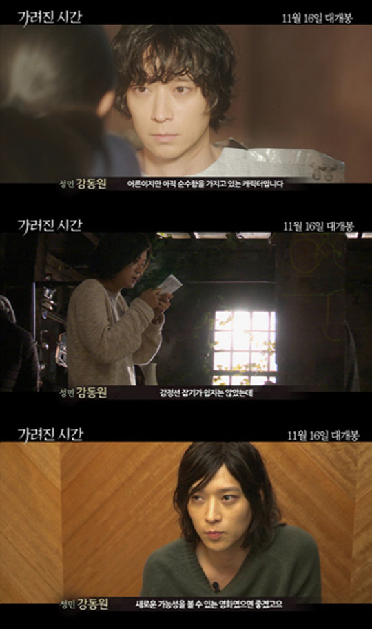 [스포츠조선닷컴 이지현 기자] 실종된 13살 소년이 며칠 후 어른이 되어 돌아왔다는 판타지적 설정과 그가 경험한 멈춰진 시간에 대한 흥미로움으로 주목받고 있는 영화 '가려진 시간'의 강동원이 '성민' 캐릭터에 대해 직접 전하는 메이킹 영상을 공개했다.