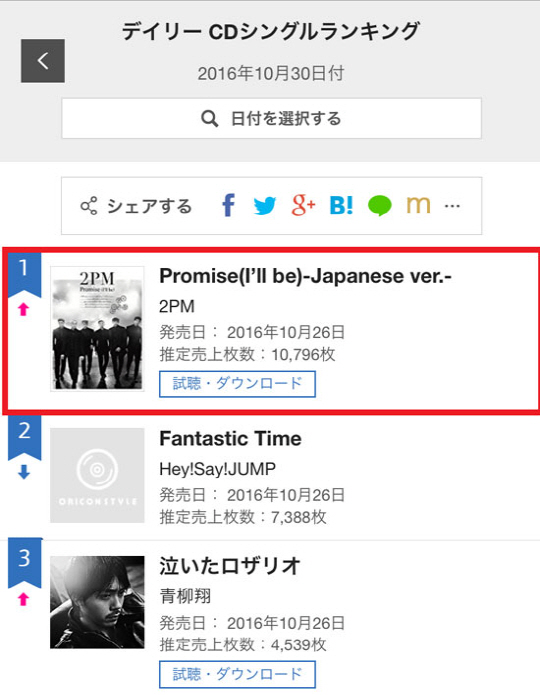 [스포츠조선닷컴 이지현 기자] 2PM이 일본 오리콘 데일리 차트 1위를 점령했다.