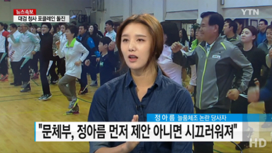 [스포츠조선 이유나 기자] 정아름이 YTN 스튜디오에 출연해 '늘품체조' 논란 속 본인에게 쏟아지는 의혹에 대해 해명하기 위해 직접 나섰다.