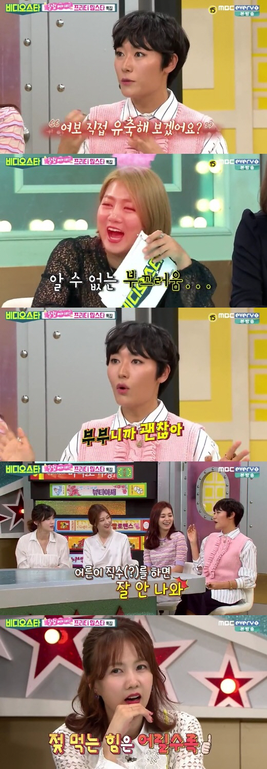 특히 김미려는 "부부사이니까 장난기가 발동해 남편에 '직접 유축해볼래요?'라고 했다. 부부니까 괜찮다"라며 "그런데 어른이 빨면 안 나온다. 아기의 젖 먹던 힘이 장난이 아닌 거다"라고 밝혀 놀라움을 자아냈다.