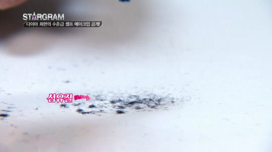 예빈과 제니가 직접 민낯까지 공개하기 까지 한 이번 방송에서는 걸그룹들이 즐겨 쓰지만 그동안은 비밀(?)로 숨겨왔던 비법들을 쏙쏙! 공개했다. 먼저 희현이 선보인 비결은 바로 헤어라인 메이크업! 걸그룹의 얼굴이 유난히 작아보이고 머리숱이 많이 보이는 비결이 바로 여기에 있었다. 휑해 보일 수 있는 정수리를 헤어라인 전용 파우더로 감쪽같이 커버해 숱이 많아보이는 효과를 노리는 것! 희현은 아찔한 걸그룹 인형 속눈썹 비결도 함께 공개했다.