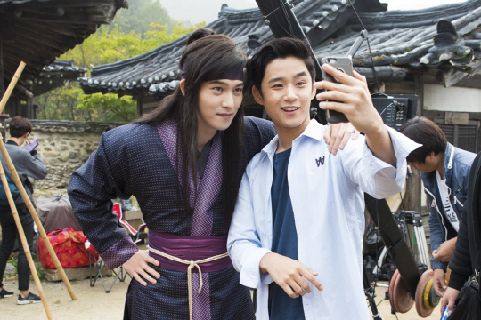 [스포츠조선닷컴 김영록 기자]그룹 씨엔블루 이종현과 FT아일랜드 이재진의 브로맨스가 촬영장 분위기를 끌어올리고 있다.