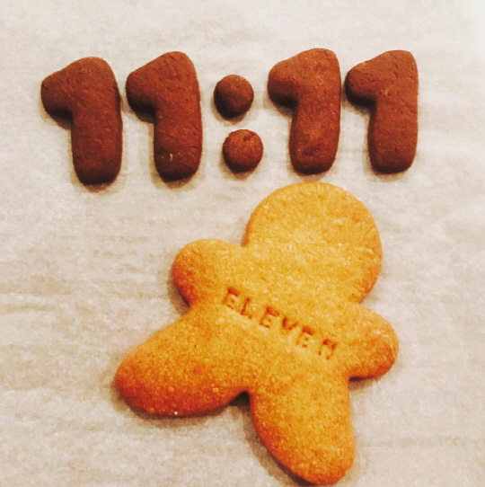 공개된 사진에는 숫자 모양과 영문 'ELEVEN'이 새겨진 쿠키로 태연이 직접 만든 것으로 보여진다.