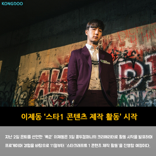 지난 2일 은퇴를 선언한 '폭군' 이제동은 3일 콩두컴퍼니의 크리에리터로 활동 시작을 발표하며 프로게이머 경험을 바탕으로 11월부터 '스타크래프트 1 콘텐츠 제작 활동'을 진행할 예정이다.