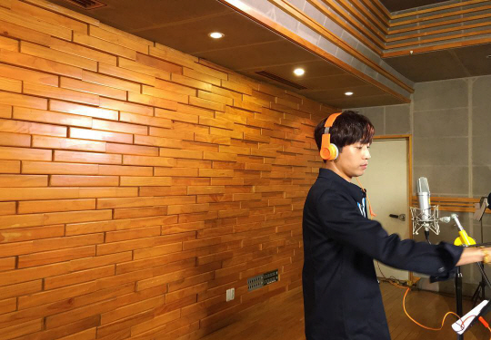 사진 속 앤디와 에릭은 진지한 표정으로 녹음에 임하고 있다. 이들의 머리를 감싼 주황색 헤드폰이 눈에 띈다.