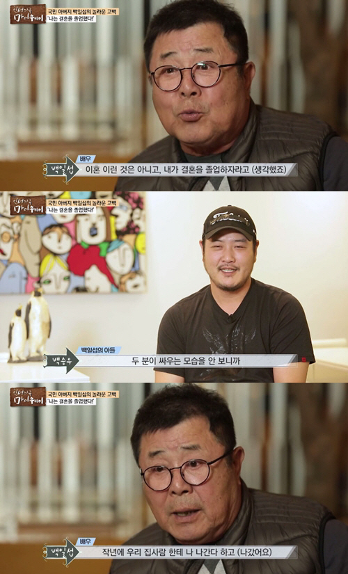 백일섭의 아들은 "이상하게 들릴지 모르겠는데 큰 감흥이 없었다. 두 분이 싸우는 모습을 안 보니까. 그런 모습을 오래 보고 살았었다. 난 오히려 감흥이 없었고, 편하다. 나만 편한 것 같다"고 말했다. <스포츠조선닷컴>