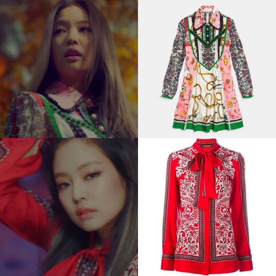 YG스러운 스타일링이 제니에게 매우 잘 어울리는 듯 하다. 블랙핑크의 '불장난' 뮤직비디오 속 제니는 유니크한 패턴 스타일링을 연출했다. 눈에 띄는 컬러감과 다양한 패턴이 가미된 드레스나 블라우스를 선택해 유니크하고 감각적인 스타일링을 완성했다.