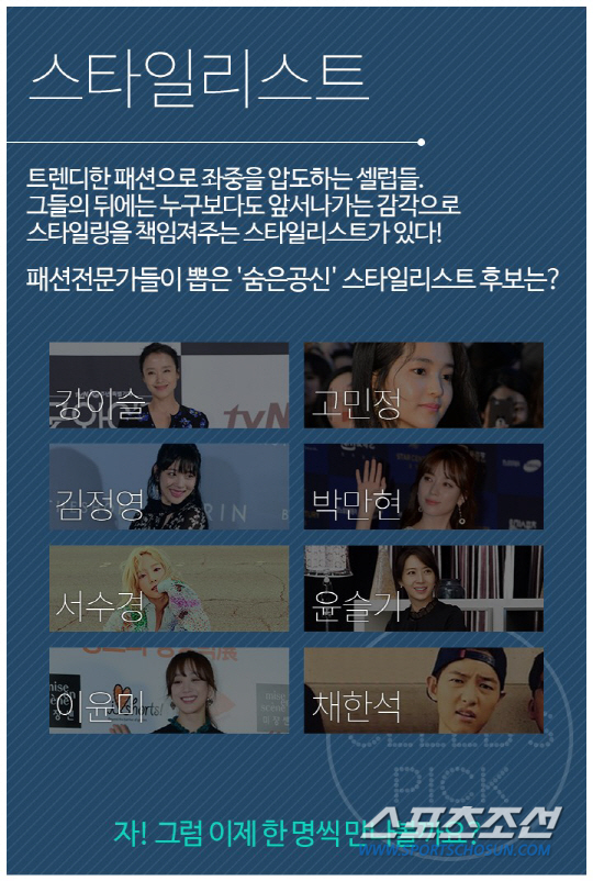 설리, 소녀시대 등 아이돌을 비롯해 전도연, 한효주, 김민희, 김태리 등 영화/드라마 속 패셔니스타까지 그들의 패션 뒤에는 스타일리스트들의 혁혁한 공이 있었다. 총 8명의 후보가 각축을 벌이며 경쟁하고 있는 가운데 현재 손예진, 정려원, 김고은, 문채원을 담당하고 있는 이윤미 스타일리스트와 전도연, 김민희, 고아성의 패션을 책임지고 있는 강이슬 스타일리스트, 그리고 한효주, 이병헌, 신혜선 등을 맡고 있는 박만현 스타일리스트가 각각 32.57%, 20.14%, 11.39%로 1,2,3위를 달리고 있다. (4일 오전 10시 기준)