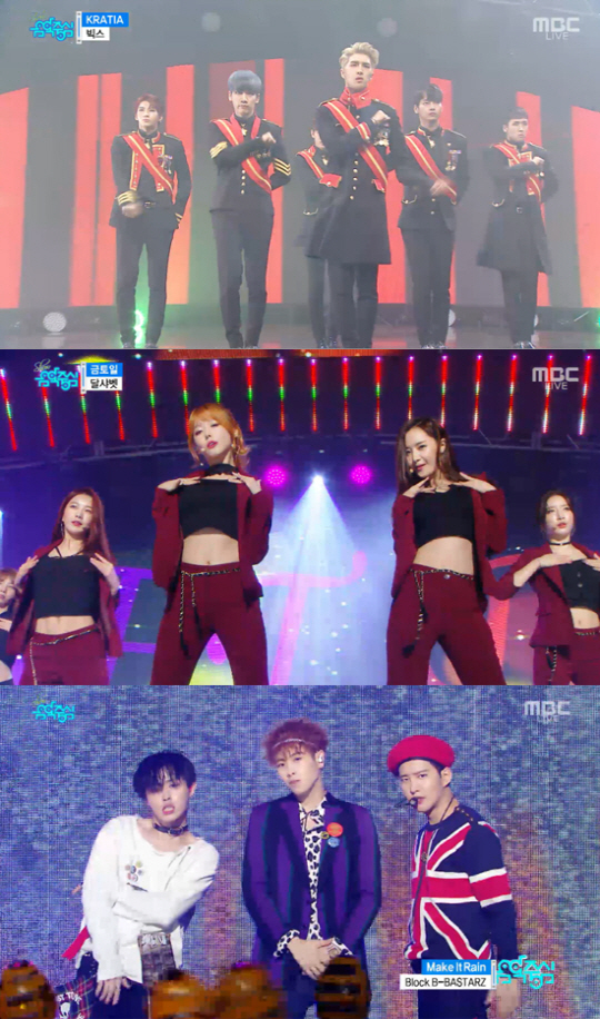 뿐만 아니라 이날 '음악중심'에는 엑소 첸백시, 빅스, 블락비 바스타즈, 방탄소년단, 달샤벳, 트와이스, 몬스타엑스, SF9, 펜타곤, 앤씨아, 불독, 하이틴, 왁스, 먼데이키즈, 베리굿, 더이스트라이트 등이 출연했다.