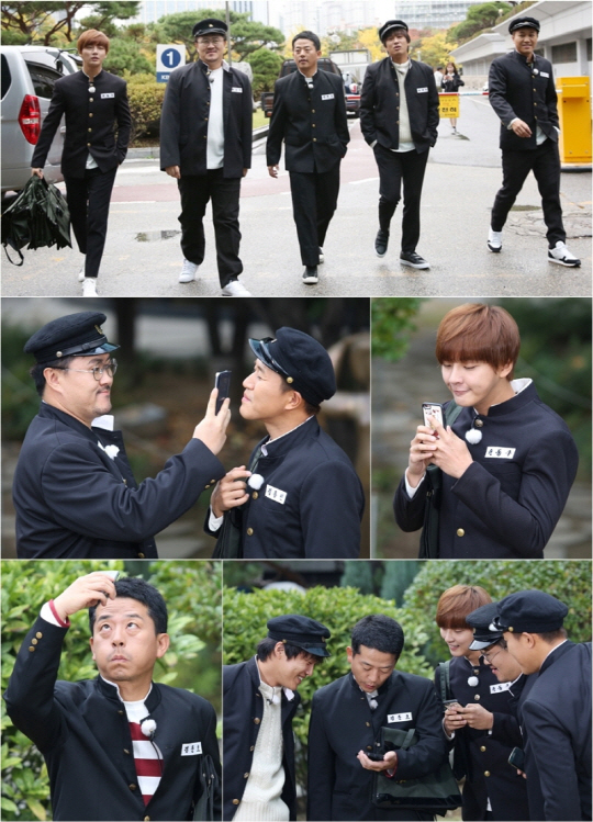 학창시절로 돌아간 듯한 다섯 멤버들의 교복자태와 휴대전화를 보며 지은 미소의 의미는 오늘(6일) 방송되는 '1박 2일'을 통해 확인할 수 있다.