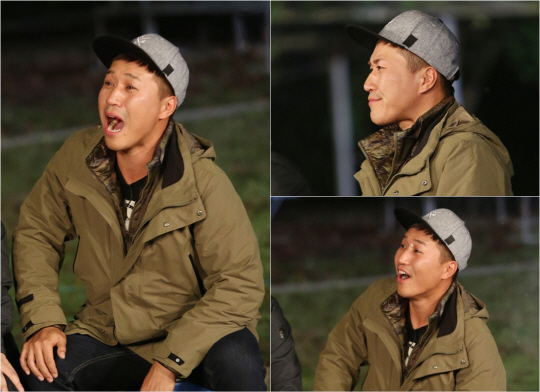이는 잠자리 복불복 중인 김종민의 모습으로, 멤버들은 '눈물 빨리 흘리기' 게임을 통해 실내 취침자를 정하게 됐다. 이때 김종민은 얼굴에 온 힘을 모으더니, 이내 눈과 입을 최대로 확장시키는 모습으로 폭소를 유발했다는 후문. 이어 그는 소리를 지르는 등 빠르게 눈물을 흘릴 수 있는 수단과 방법을 총 동원하는 모습으로 현장을 폭소케 만들었다.