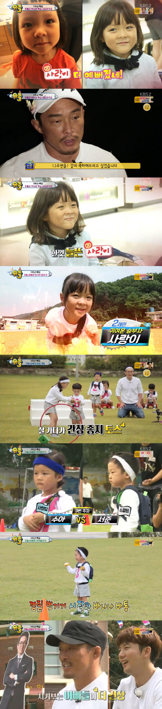 [스포츠조선닷컴 정유나 기자] '슈퍼맨' 3주년을 축하하기 위해 가족들이 모두모여 가을 운동회를 개최했다.