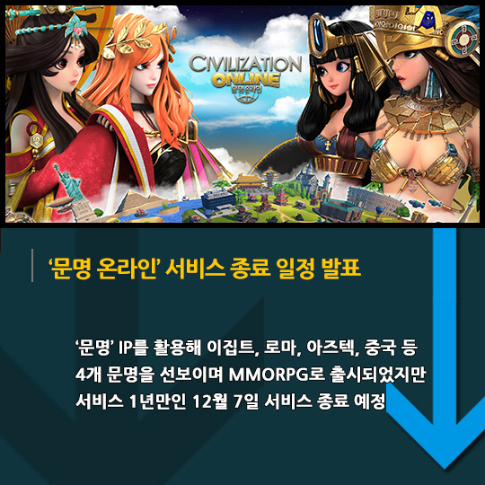 '문명' IP를 활용한 MMORPG '문명 온라인'과 2D 횡스크롤 액션 모바일 RPG '브레이브스 for Kakao' 등 연이은 게임 서비스 종료 발표
