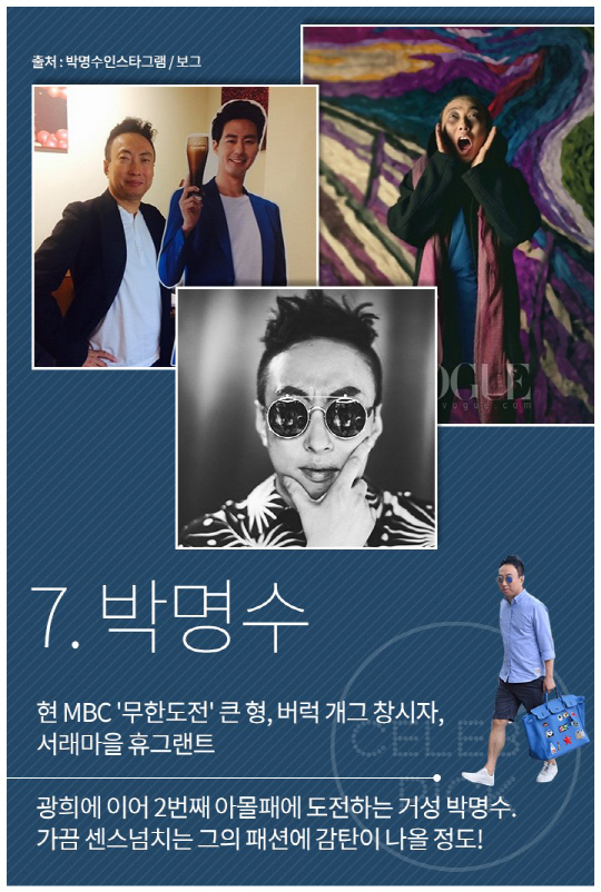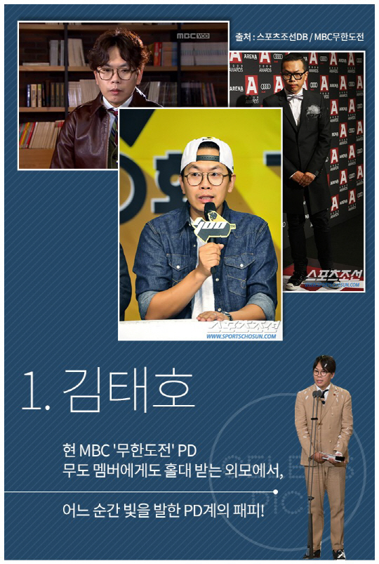 현재(7일 오후) '무한도전' 멤버들 중 1위를 달리고 있는 김태호 PD다. 프로그램을 만드는 센스도, 패션 감각도 뛰어난 그는 '무한도전' 화면 속에는 캐주얼한 훈남룩을 선보이며 시상식 등 공식석상에서 감각적인 수트차림을 뽐내며 자타공인 패셔니스타로 떠올랐다. 트레이드 마크처럼 늘 함께하는 안경은 그의 패션을 한층 감각적으로 살리는 포인트다.