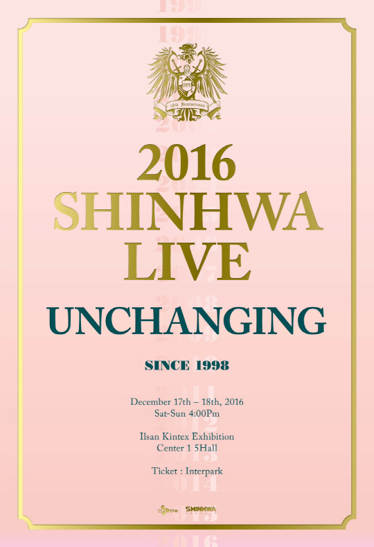 한편 오는 12월 17일(토), 18일(일) 오후 4시 일산 킨텍스에서 '2016 SHINHWA LIVE ? UNCHANGING' 콘서트를 개최하는 신화는 오늘(8일) 오후 8시 팬클럽 선예매와 오는 10일(목) 오후 8시 일반예매를 진행하며, 29일(화) 정규 13집 앨범 '언체인징(UNCHANGING)' Part 1을 발매한다.