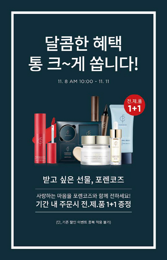[스포츠조선 엔터스타일팀 최정윤 기자] 코스메틱 브랜드의 빼빼로 데이 1+1 이벤트를 소개한다.