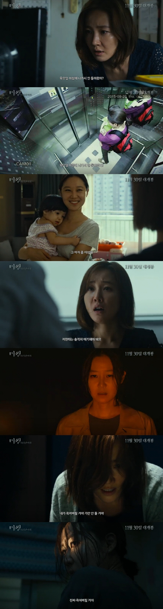 한편, '미씽: 사라진 여자'는 이름도 나이도 모든 것이 거짓이었던 보모가 아이를 납치한 뒤 5일간의 추적을 그린 작품이다. 엄지원, 공효진, 김희원, 박해준 등이 가세했고 '어깨너머의 연인' '…ing'의 이언희 감독이 메가폰을 잡았다. 오는 30일 개봉한다.
