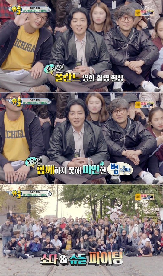 이에 촬영 차 폴란드에 머문 이범수는 우연히 영화팀과 '슈돌' 영상 편지에 대한 이야기를 나누었고 아이들과 함께 시간을 보내지 못한 이범수를 위해 스태프 전원이 영상 편지에 동참하기로 전격 결정하기로 했다.