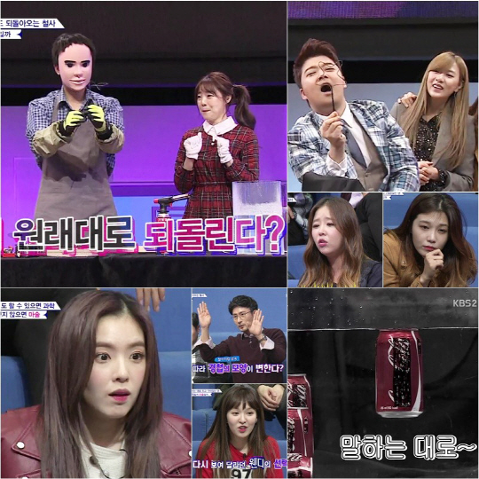 [스포츠조선닷컴 이지현 기자] KBS2 새 예능 '트릭 앤 트루'가 에이핑크 정은지부터 레드벨벳 아이린까지 걸그룹의 날카로운 추리에 신지, 임형준 등의 유머가 어우러지며 유쾌한 웃음과 과학적 지식을 가득 안겼다.