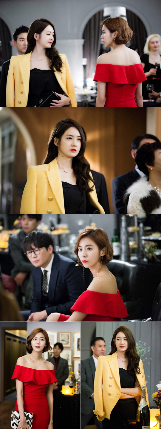 이요원은 블랙 드레스에 재킷을 어깨에 걸친 채 기품 있고 우아한 매력을 드러냈다. '얼음여왕'답게 도도하고 서늘한 카리스마를 내뿜는 이요원에 맞서 유이 역시 이전에 보여줬던 후줄근한 차림에서 벗어나 몸매를 완전히 드러낸 초밀착 강렬한 레드드레스로 세련된 자태를 뽐냈다.