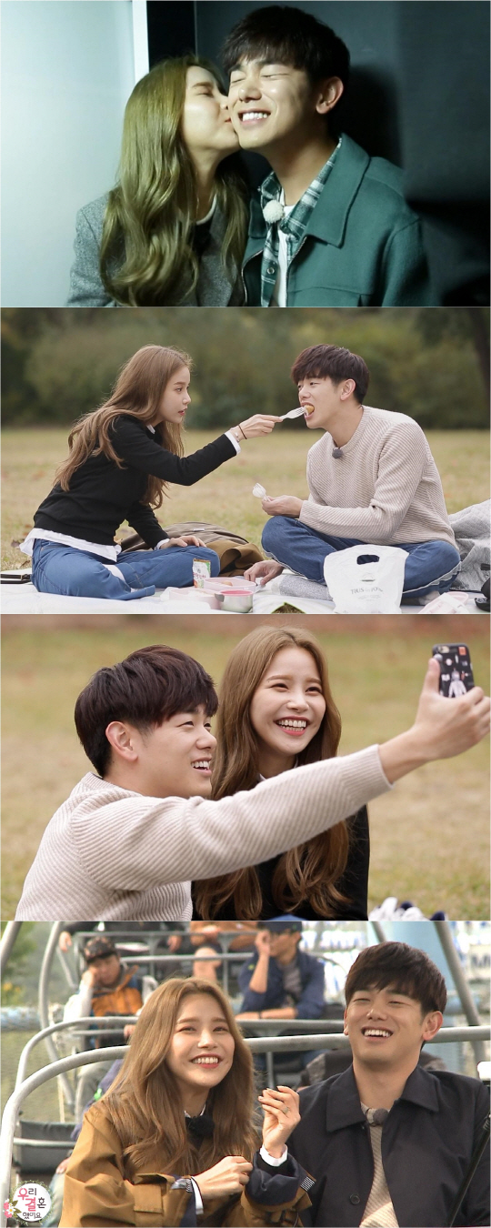 그런 가운데, '똥이 커플' 에릭남-솔라의 3단 '꽁냥' 콤보 사진이 공개돼 부러움을 자극한다. 두 사람은 직접 싼 도시락을 나눠먹고 초밀착 셀카를 찍는가 하면, 볼뽀뽀까지 하는 등 애정을 과시하고 있다.