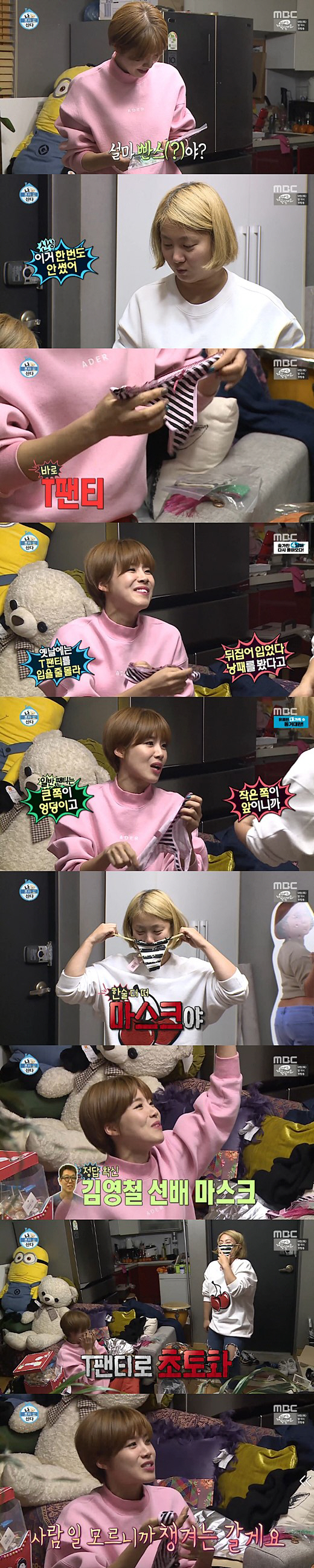 장도연은 웃음을 터뜨리며 "예전에 T팬티를 입을 줄 몰라 뒤집어 입었다가 낭패를 봤다"고 고백했다. 박나래는 또 다른 T팬티를 꺼내들더니 입을 가리며 "마스크다"고 장난을 쳤고, 장도연은 "사람 일 어떻게 될지 모르니까 챙겨는 갈게요"라며 T팬티를 챙겨 웃음을 자아냈다.<스포츠조선닷컴>