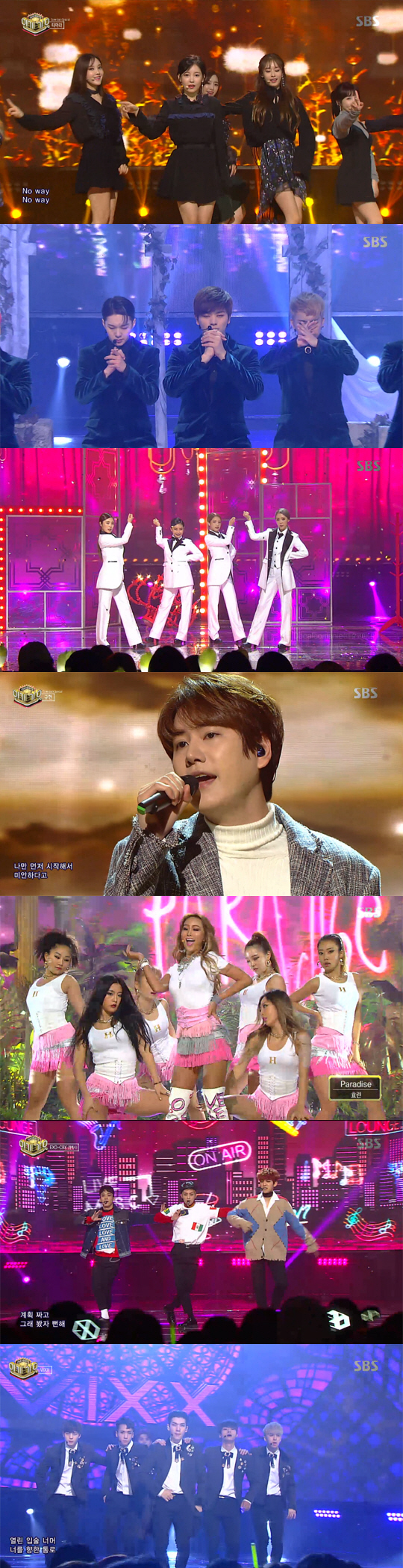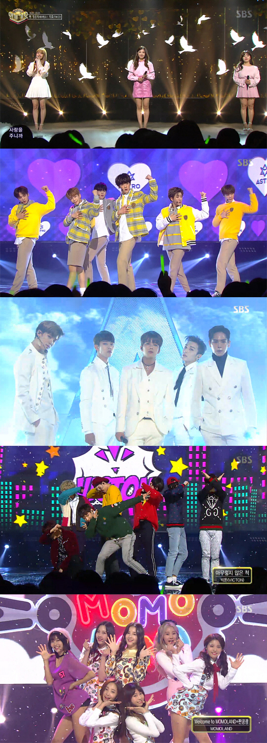 에이핑크 정은지-트와이스 지효-벤이 참여한 인기가요 뮤직 크러쉬 특집 '내가 예뻐진 이유' 무대가 2주 연속 무대에 올랐고, 청량돌 그룹 아스트로와 B.A.P의 컴백 무대가 이어졌다. 빅톤과 모모랜드도 데뷔 무대를 가졌다.