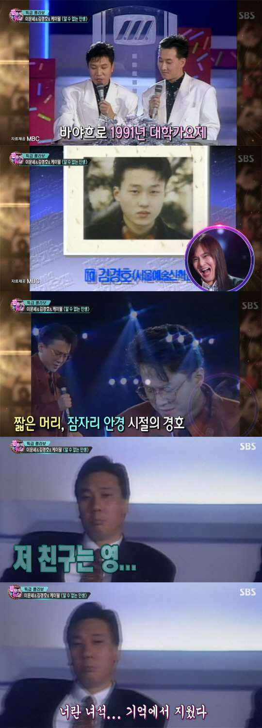 김경호는 "저때 제가 실수를 해서 저런 표정을 지으신 것"이라고 설명했다. 이문세는 '기억하시냐'는 전현무의 말에 "저 표정은 기억 못하는 표정"이라며 웃었다.