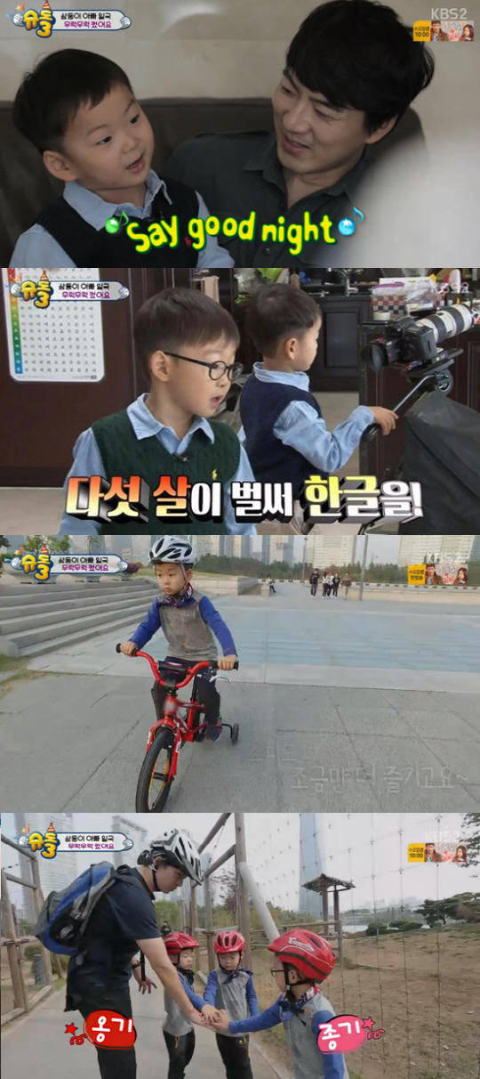 13일 방송된 KBS 2TV '슈퍼맨이 돌아왔다'에서는 지난 2월 아쉬운 작별인사를 끝으로 '슈퍼맨'을 떠났던 삼둥이, 그 후 281일간의 삼둥이의 모습이 공개됐다.