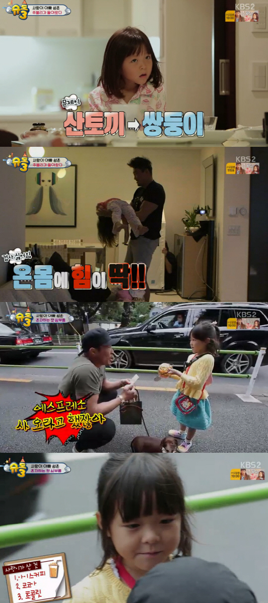 혼자 길을 나선 추사랑은 바로 애견숍을 발견했다. 점원과 이야기를 주고 받을 정도로 훌쩍 큰 사랑이. 이후 사랑이는 커피가게로 향했고, 사랑이는 아이스커피까지 사는데 성공했다.