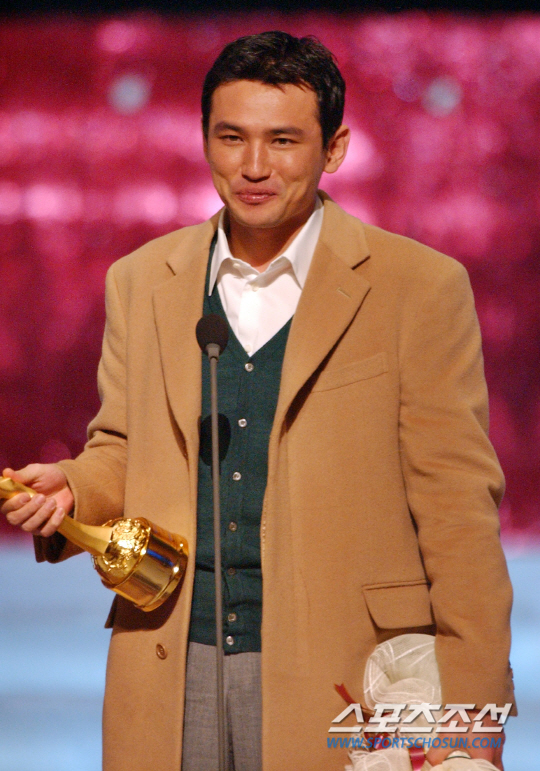 | align='left" bgcolor='#ffffff" class='caption'>'믿보황' 황정민이 2002년 제24회 청룡영화상에서 신인남우상을 받는 장면. 이후 황정민은 청룡영화상에서만 남우주연상을 두 번이나 수상하며 대한민국 대표 배우로 성장했다. |