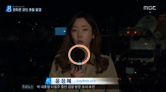 하지만 카메라에 포착된 MBC 기자의 모습은 평소와는 다른 모습. 'MBC News'라고 적힌 로고 대신 아무것도 쓰여 있지 않은 '검은 마이크'를 들고 현장 소식을 전하고 있었다. 보통 지상파, 그것도 방송사의 메인 뉴스 중계 기자는 방송사 로고가 선명하게 찍힌 마이크를 들고 한다. 그런데 이날 MBC 기자는 MBC 로고를 떼어낸 마이크로 현장을 중계했고 당시 모습은 고스란히 방송됐다.