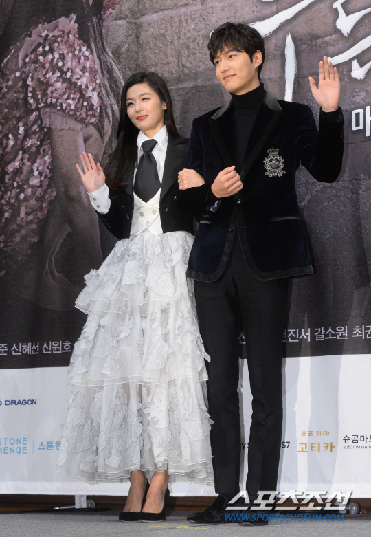 탤런트 이민호와 전지현이 14일 논현동 임피리얼 팰리스호텔에서열린 SBS 수목드라마 '푸른바다의 전설' 제작발표회에서 포토타임을 갖고있다. '푸른바다의 전설'은 멸종직전인 지구상의 마지막 인어(전지현)가 도시의 천재 사기꾼(이민호)을 만나 육지생활에 적응하며 벌어지는 예측불허의 사건들을 다룬 판타지 로맨스다. 논현동=최문영 기자 deer@sportschosun.com /2016.11.14/