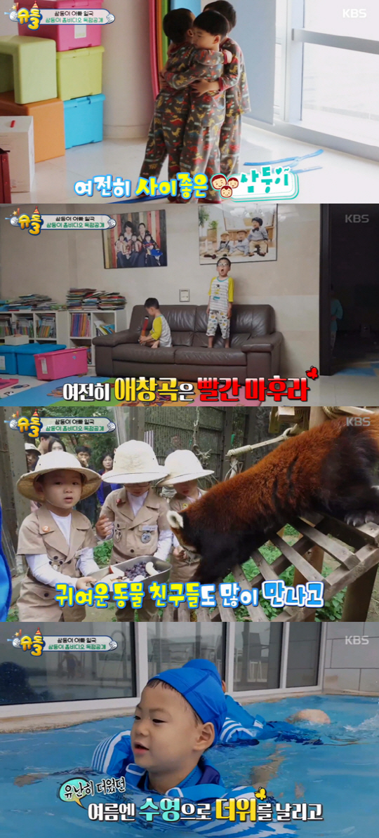 13일 방송된 KBS 2TV '슈퍼맨이 돌아왔다'에서는 지난 2월 아쉬운 작별인사를 끝으로 '슈퍼맨'을 떠났던 삼둥이 그 후 281일간의 모습이 공개됐다.
