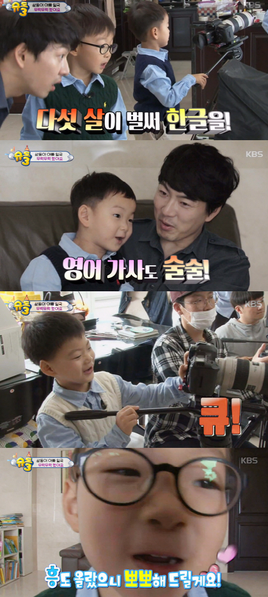 5살인 대한이는 프롬프터에 적힌 한글을 읽어 송일국을 놀라게 했다. 송일국은 "진짜 한글 가르쳐준 적 없다"며 "이거 읽으면 어떡해, 벌써부터"라며 기쁨의 미소를 지어보였다.