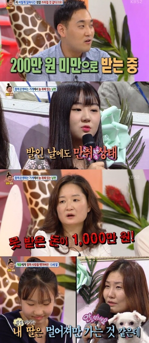 [스포츠조선 박현택 기자] 하루 17시간동안 노동을 시키고 월 200만원을 주는 사장, 24시간 만취해 경제생활은 아내에게 맡기는 남편, 초등학교 6학년 딸에 쌍둥이 육아 맡긴 엄마, 결혼 후 회사를 10번 넘게 그만 둔 남편, 13세 딸보다 개 두마리를 더 챙기는 엄마, 임신한 아내보다 키우는 물고기의 출산에만 관심있는 남편, 이혼 후 집에 골프와 음주를 즐기느라 혼자 있는 고3딸을 방치하는 아빠, 이혼 후 동생에게 딸을 맡기고 놀러 나가는 오빠…