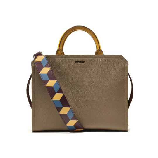 유니크한 패턴 스트랩의 한 면은 브루노말리의 시그니쳐인 포르티코 패턴으로 꾸며져 있으며, 다른 한 면은 가죽 소재에 은은한 컬러를 입힌 디자인으로 양면을 모두 사용 가능하다.