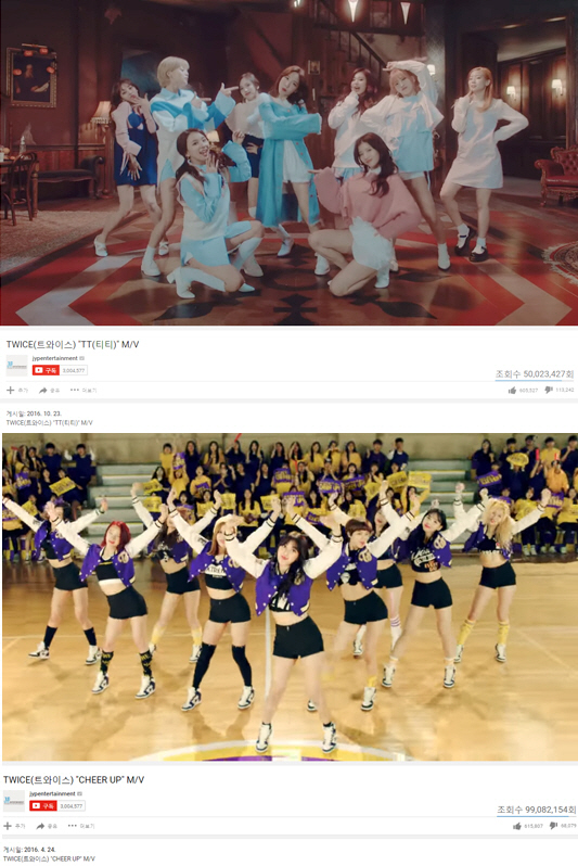 하지만 'TT 열풍'은 싸이를 제외하고 한국 가요사상 유튜브 조회수 최단기간 기록을 모두 바꾸고 있다. 앞서 '치얼 업'이 5000만 뷰에 도달하기까지는 56일이란 시간이 필요했다. TT는 그 1/3 가량인 21일만에 5000만 뷰를 넘겼다.