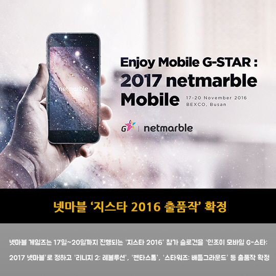 - 넷마블 '지스타 2016 출품작' 확정