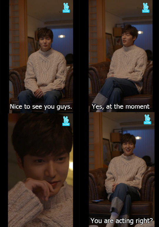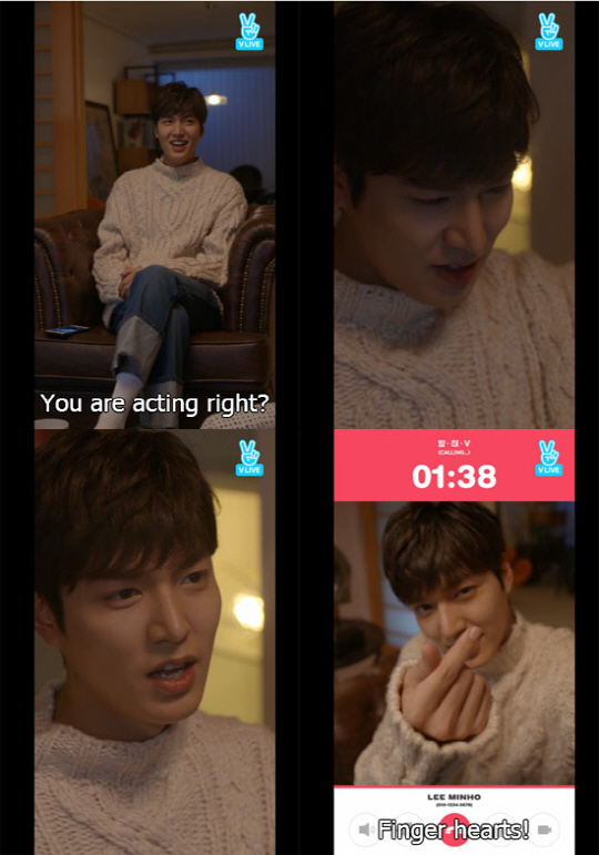 이민호의 첫 'V앱' 인터뷰를 위해 김태진이 MC로 등장했다. 김태진은 '덕후캠'에 대해 언급했다. '덕후캠'은 매력적인 신체포인트를 과감하게 클로즈업(close-up) 팬서비스다. 이민호는 매력 포인트에 대해 "팬분들은 눈동자를 좋아하시는 것 같다"고 답했다. 하지만 처음 '눈깔'로 표현한 이민호는 "드라마 2회에 '반짝반짝한 니 눈깔이 좋아'라는 대사가 있어 활용해봤다"라며 센스있는 답을 했다.
