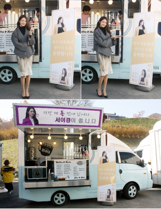 앞서 이요원은 12일 경기도 용인에 위치한 MBC 새 월화드라마 '불야성' 촬영 현장에 커피, 차, 음료, 쿠키 등 다양한 메뉴로 구성된 커피차를 준비했다. 추워진 날씨에 고생하고 있는 스태프들을 위해 직접 따뜻한 자리를 마련한 것.
