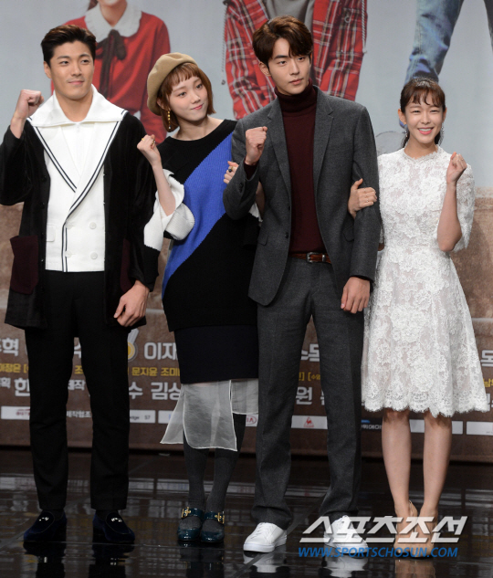 MBC 새 수목드라마 '역도요정 김복주'의 제작발표회가 15일 MBC 상암 신사옥에서 열렸다. 이재윤 이성경 남주혁 경수진이 포즈를 취하고 있다. '역도요정 김복주'는 바벨만 들던 스물한 살 역도선수 김복주에게 닥친 폭풍 같은 첫사랑을 그린 감성청춘 드라마다. 상암동=허상욱 기자 wook@sportschosun.com/2016.11.15/