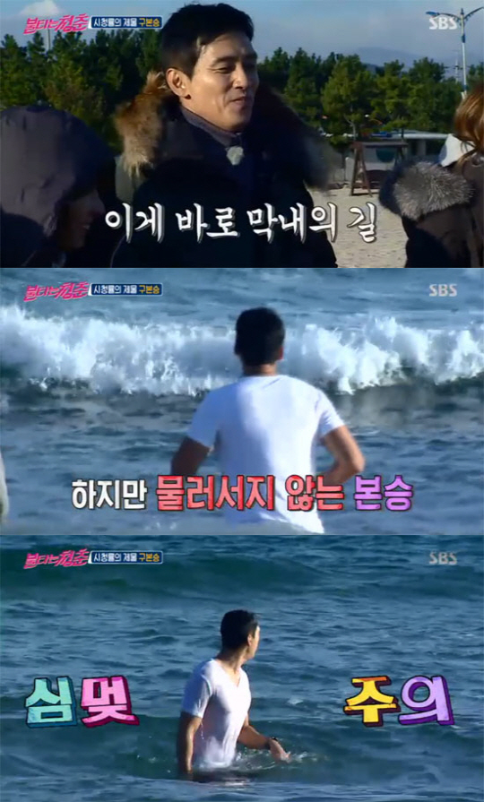 구본승은 바닷가로 뛰어들었고 멋지게 입수를 했다. 물에 젖은 구본승은 여전한 섹시미를 자랑하며 형, 누나들의 예쁨을 받았다.