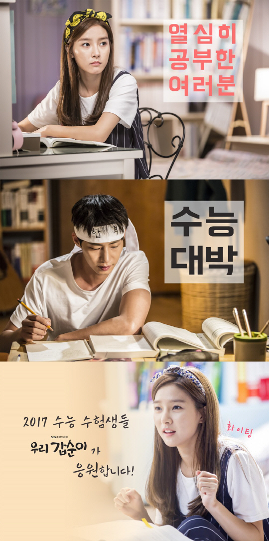 '우리 갑순이' 제작진 역시 "그동안 '갑순이네 어머니한테 받은 수모, '헛수고'라고 놀리던 친구들, 옆에서 응원해준 갑순이, 아들만 믿어준 엄마를 위해서라도 이번에는 꼭 합격한다. 삼천 프로 합격한다!'는 갑돌이의 강한 집념과 메시지 처럼 갑돌이의 합격 기운이 수능생들에게 대박 기운으로 이어지길 기원한다"며 수능생들을 함께 응원했다.