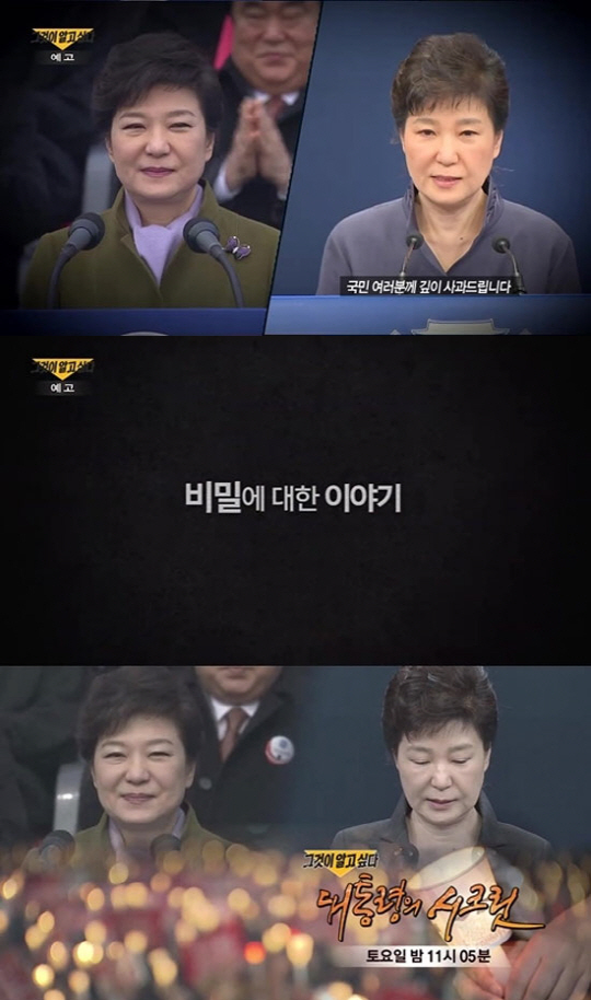 18일 제작진 측은 공식 SNS에 예고편을 게재했다. '대통령의 시크릿'이라는 제목의 예고영상에는 '지금까지 공개되지 않은 비밀에 대한 이야기'라는 글과 함께 박근혜 대통령 취임식 연설 장면과 최근 불거진 '최순실 국정농단 사건'을 두고 발표한 대국민 사과 영상이 교차 편집 됐다.