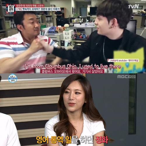 또한 마동석은 고등학교 시절 미국 오하이오로 이민 가 13년간 거주한 유학파로 수준급의 영어 실력을 자랑한다. 여기에 예정화도 트레이너로 이름을 알리기 전 영어동시통역사로 일해 남다른 영어 실력을 갖고 있는 것으로 전해진다.