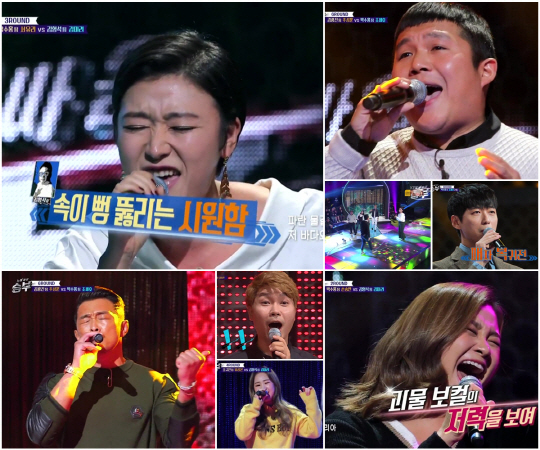 내로라 하는 명품 보컬리스트들의 소름 돋는 가창력도 막힌 속을 뻥 뚫리게 하며 혼을 쏙 빼놨다. 박수홍 팀의 히든카드로 나온 괴물보컬 손승연과 4라운드에서 조규찬 팀의 히든카드로 나온 유성은의 폭발적인 음색은 무대를 뜨겁게 달구기 충분했다. 특유의 감미로우면서도 짜릿한 고음은 노래프로그램을 보는 맛을 더했고, 진짜 노래대결 승부의 가치를 드높였다. 유성은은 김미려에 무려 12대1의 압도적인 승리를 거뒀다.