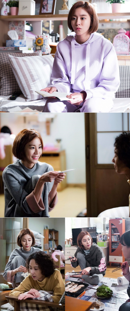 공개된 사진 속에는 트레이닝복 차림으로 제대로 '집순이' 모드에 들어간 유이의 모습이 담겨있다. 트레이닝복을 입은 채 세상 편한 모습으로 무엇인가에 골몰한 듯 입을 삐죽이는 사랑스러운 유이의 모습이 시선을 사로잡는다. 극중 이모 숙희(윤복인 분)에게 온갖 아르바이트를 해가며 힘들게 모은 용돈을 드리는 해맑은 유이의 모습이 눈길을 끈다. 또한 직접 파스를 붙여주는 등 살갑고 심성 고운 조카의 모습에서는 '욕망덩어리' 세진은 온데간데없다.